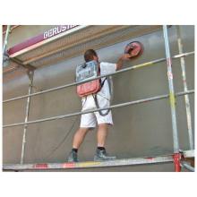 ¿Trabajando en andamios y sin manguera de agua a mano? ¿O está trabajando en un sitio de construcción sin agua o solo con agua contaminada? No hay problema con la máquina de procesamiento de yeso PFM WT . El depósito de agua de 6 l, que se lleva en la espalda, proporciona suministro de agua incluso en condiciones desfavorables.