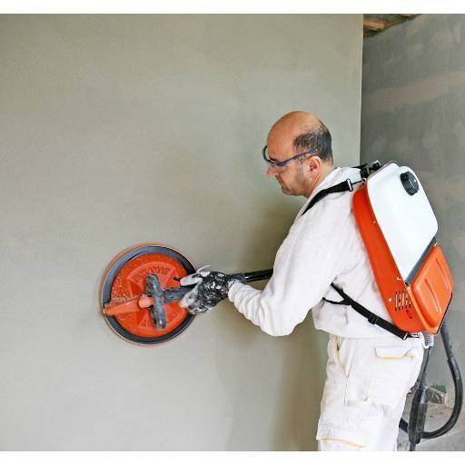 ¿Trabajando en andamios y sin manguera de agua a mano? ¿O está trabajando en un sitio de construcción sin agua o solo con agua contaminada? No hay problema con la máquina de procesamiento de yeso PFM WT . El depósito de agua de 6 l, que se lleva en la espalda, proporciona suministro de agua incluso en condiciones desfavorables.