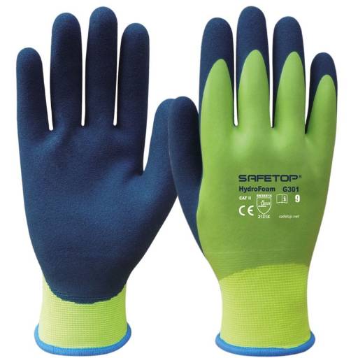 Guante impermeable de látex microporoso para trabajos en entornos húmedos.