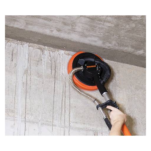 Gracias a nuestro sistema probado de llevar el motor separado del mango en una correa de sujeción o para el hombro, la amoladora es realmente liviana (mango 2,4 kg). Esto permite un trabajo prolongado y sin fatiga en paredes y techos.