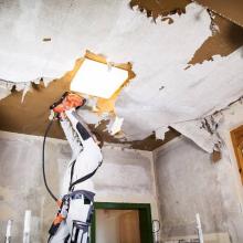 Retire yeso viejo, pintura, residuos de adhesivo y crecimiento de plantas.