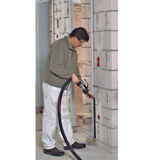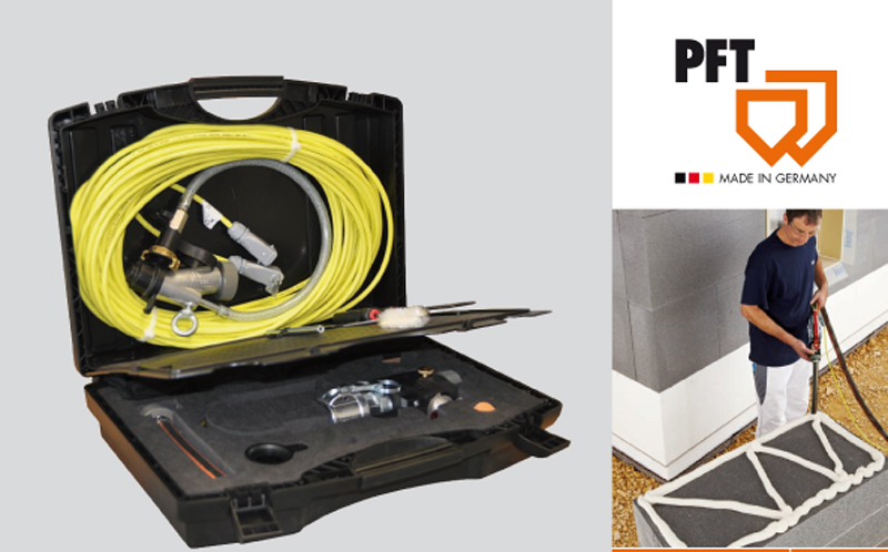 El juego de proyección PFT JETSET pro es gracias a las tres boquillas el complemento ideal en las obras, especialmente para la instalación de SATE.