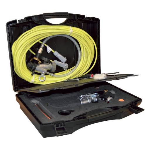 La pistola PFT JETSET pro con control eléctrico está compuesta por una válvula tipo “macho” cónico, un interruptor de inducción con enchufe de 4 polos para mando a distancia y un acople de manguera de mortero LW24. Según la aplicación se pueden intercambiar de forma rápida y sencilla las boquillas.